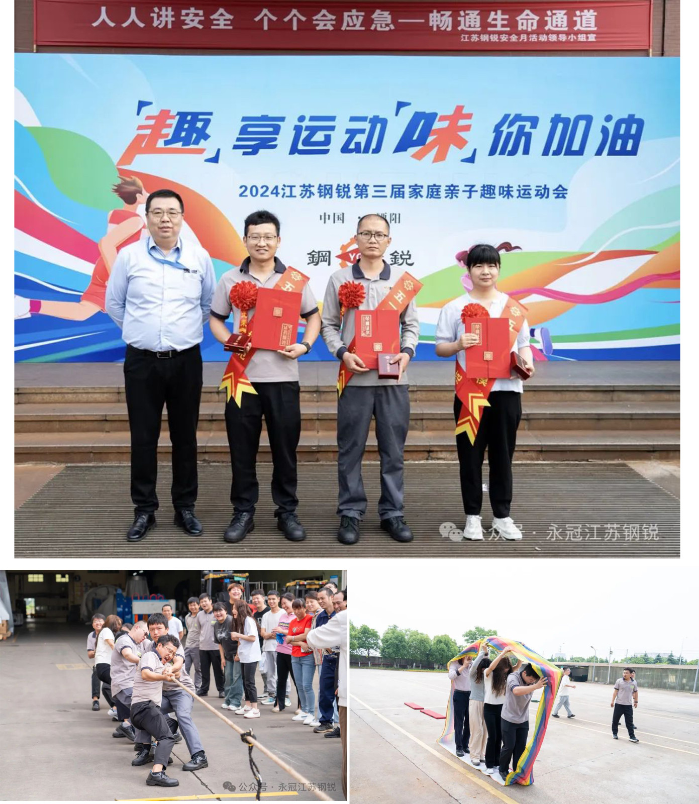 2024年6月1日,第三屆永冠鋼銳“凝心鑄魂’安全同行”文體藝術(shù)節(jié)如期而至,本次文體藝術(shù)節(jié)以“趣享運(yùn)動(dòng)、味你加油”為主題,舉辦家庭親子趣味運(yùn)動(dòng)會(huì)暨2023年度勞模表彰會(huì)為開(kāi)幕,賽場(chǎng)上的永冠鋼銳人“活”力全開(kāi),汗水與青春碰撞,掌聲與歡呼同在,用熱情綻放青春風(fēng)采,燃爆全場(chǎng)。